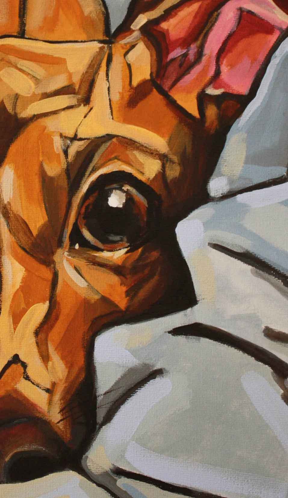 Here is another painting of a dog. To me, this painting is less literal. It has mystery, questions. I can contribute more to this artwork than the one above and I think part of the reason why is that it does not literally show us everything that is there. I can add to the story myself and include my own experiences and history. Someone else would probably add something totally different than I would, and that is the beauty of art of course.
